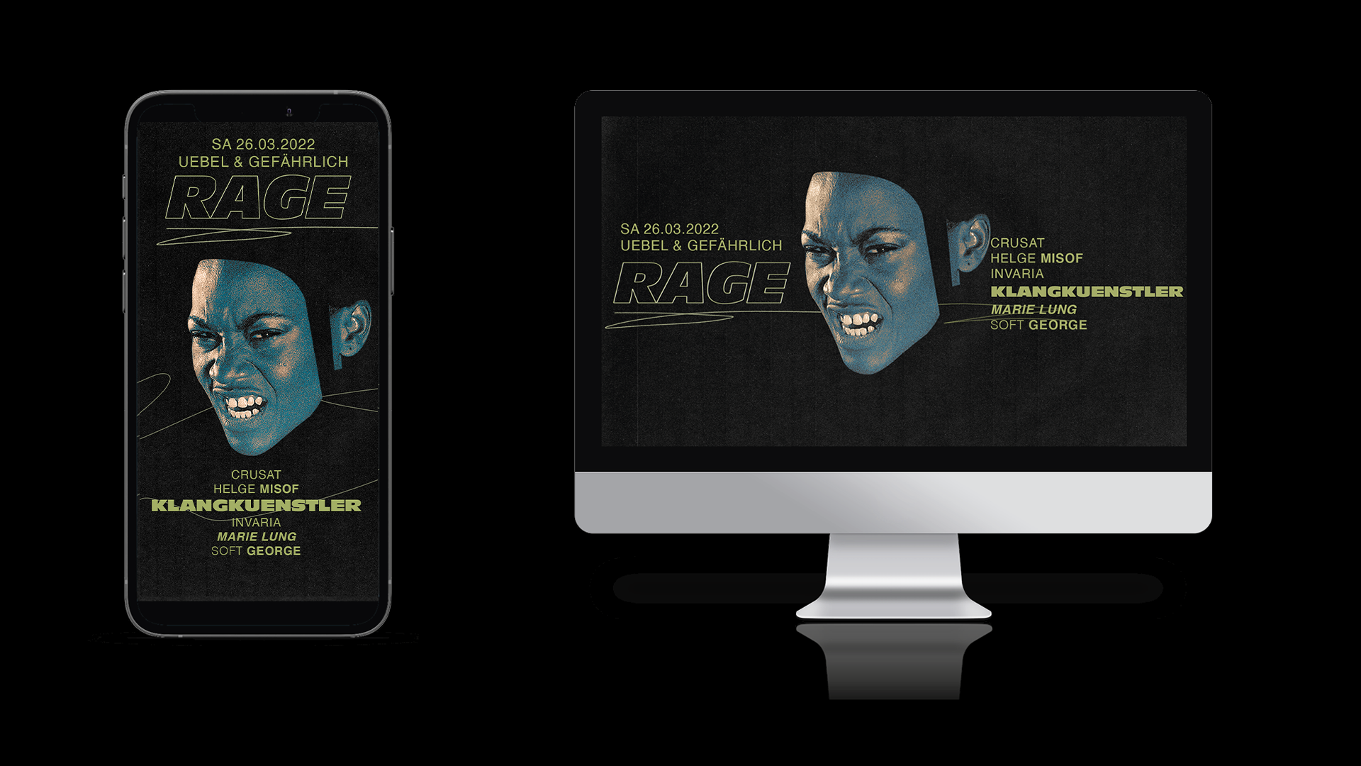 Visual Identiy für die Veranstaltungsserie „RAGE“ im Uebel & Gefährlich.